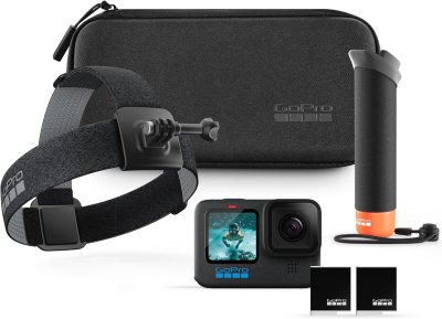 The GoPro HERO12 Black action cam is lightweight and very portable, but it packs a lot of great technology. It can shoot 5.3-resolution video (which provides more detail than 4K and 1080p) and capture 27-megapixel still photos. High Dynamic Range (HDR) technology which offers better detail in shadow areas and highlights, and GoPro’s HyperSmooth 6.0 stabilization minimizes jitter and shake in video footage. It’s also rugged: waterproof to a depth of 33 feet. This bundle includes a handler, head strap, Enduro battery, and carrying case.