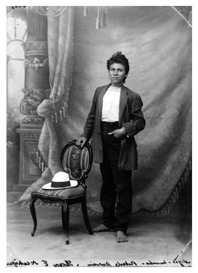 Benjamín de la Calle, Hombre (Man), 1912 Biblioteca Pública Piloto de Medellín / Archivo Fotográfico Colombian photographer Benjamín de la Calle may have been the first in the country to document subjects whom we would today consider trans. These two studio portraits depict Rosa Emilia Restrepo, a trans woman in Medellín. who was accused of stealing from the homes where she served as a maid; de la Calle apparently photographed her shortly after her arrest. This is not the only example of de la Calle’s interest in individuals with unconventional gender expressions; a later portrait titled El excluido (Álvaro Echavarría) (The Excluded [Álvaro Echavarría]) (1927), also on view in “The First Homosexuals,” depicts a well-known cross-dresser in Cúcuta.